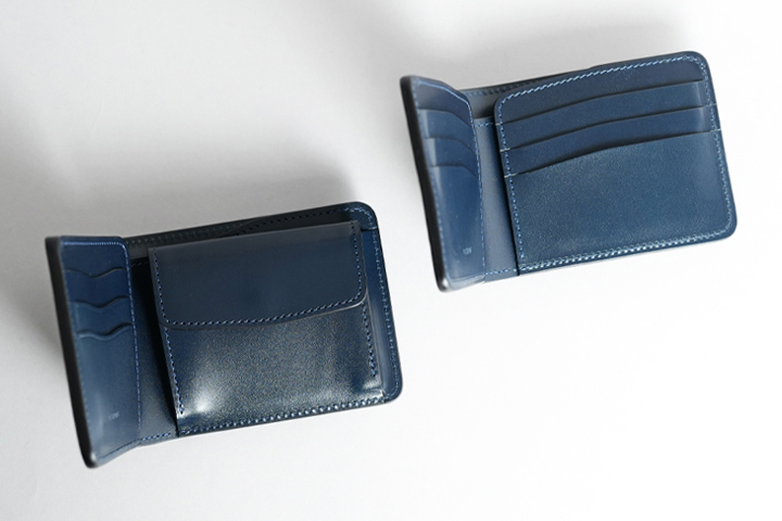 どちらも外装が一枚革で作られている二つ折り財布です。