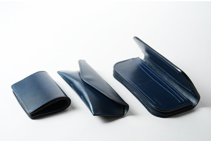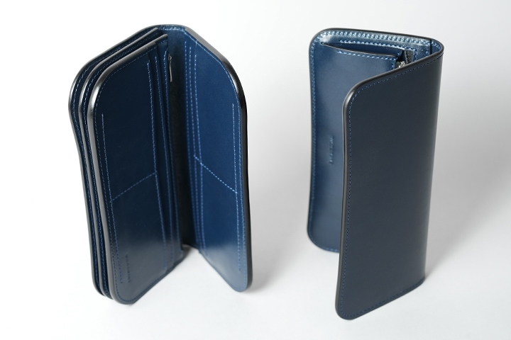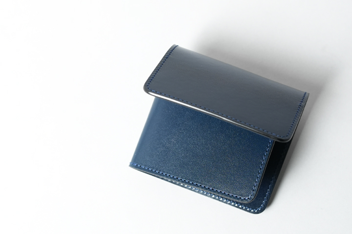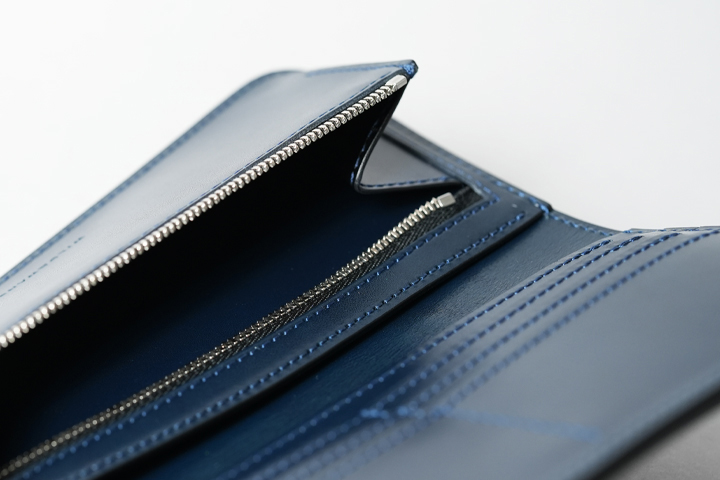 フレンチネイビーシリーズで初展開となる二つ折りの長財布の登場です。