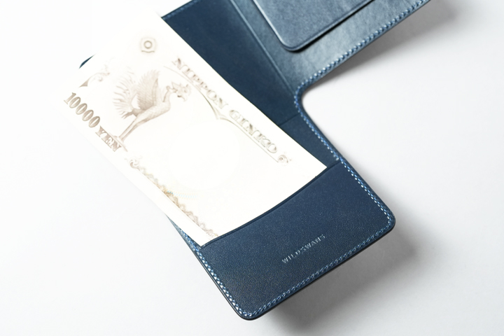 金具を使用しない総革仕様のマネークリップで、WILDSWANSで展開しているモデルの中でかなり薄型に位置するアイテムです。