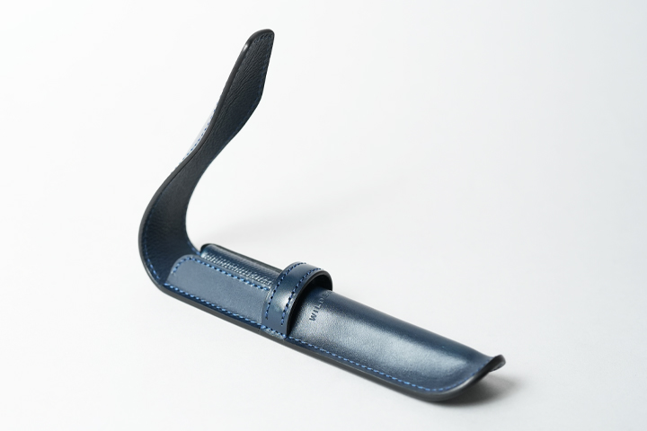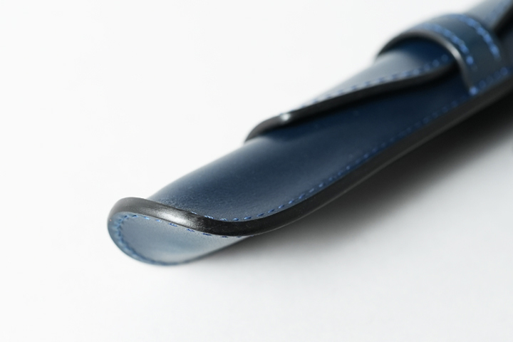 収納口は山なりの形で、皮革のハリによって自然にホールドされるようになっているので、細身の万年筆でも安定して持ち運ぶことができます。