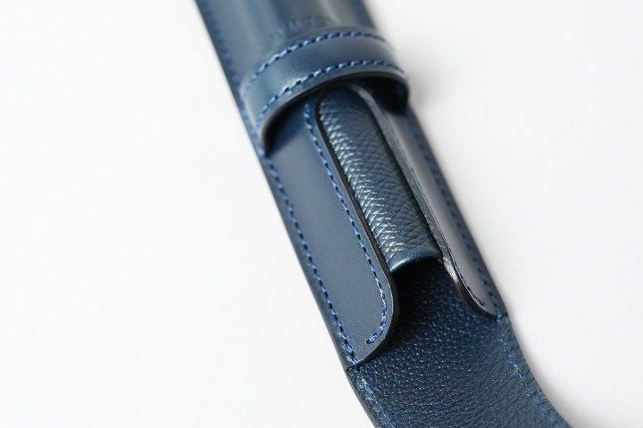 ペンを外部の衝撃から保護するために先端部分が立体的な形になっていて、モンブランの149やペリカンの1000番などの太軸のペンの収納にも対応しています。