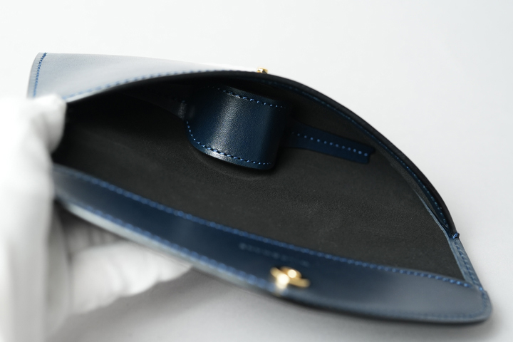 中でぐらつかないよう立体的な形状で安定感を持たせ、さらにスエード生地を採用することで、収納した眼鏡やサングラスを傷つけにくくしています。