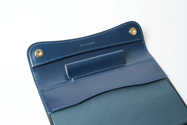 シンプルなデザインながらも、職人によって丁寧に磨き上げられたコバや、革を曲線に加工した「通しマチ」から、WILDSWANS特有の曲線の美しさを存分に堪能することができます。