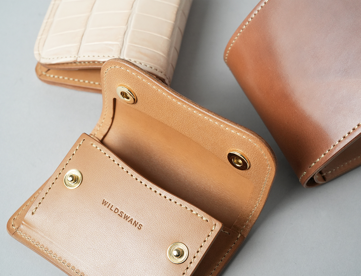 スリムかつコンパクト、そしてWILDSWANS製品の大きな特徴であるコバを十分に堪能頂けるアイテムが装いも新たに登場します。
