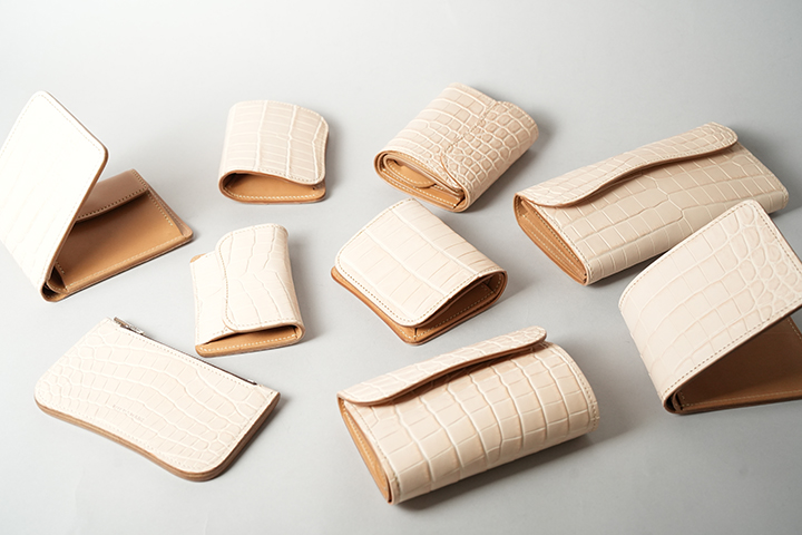 今回のヌメクロコで使用するのは、WILDSWANSの定番クロコシリーズと同じナイルクロコです。名前の通り、主にアフリカ大陸周辺に生息するクロコダイルの一種で、比較的鱗が大きく、その並びがきれいなことも特徴です。近年は動物愛護などの観点から、それまでクロコダイルを使用してきた大手メゾンでもその使用を取りやめることがあり、今後の供給における不確実性が一層高まっています。