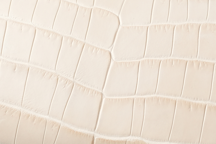 最後にご紹介するのは、エキゾチックレザーを代表するクロコダイルのヌメ革です。こちらも時折WILDSWANSに登場するレアカラーですが、これまでの2つのシリーズの皮革が表面に見た目上の凹凸がないスムースレザーなのに対し、クロコダイルは鱗をもつことからその表面には視覚でもはっきりと分かる凹凸があります。もちろんリアルなクロコダイルなので、鱗には個体差がありますが、染色を施さないことでむしろ生々しく野性味が際立ちます。