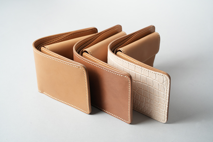オーソドックスな二つ折り財布のGROUNDER。3つのモデルともに皮革の個性が光る仕上がりとなりました。