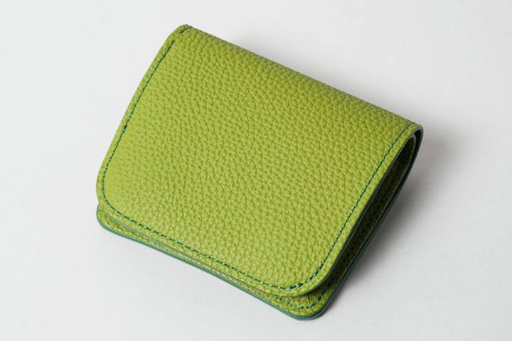 鮮やかで発色の良い明るいグリーンに、濃いグリーンのステッチがほんのりと差し色になっています。