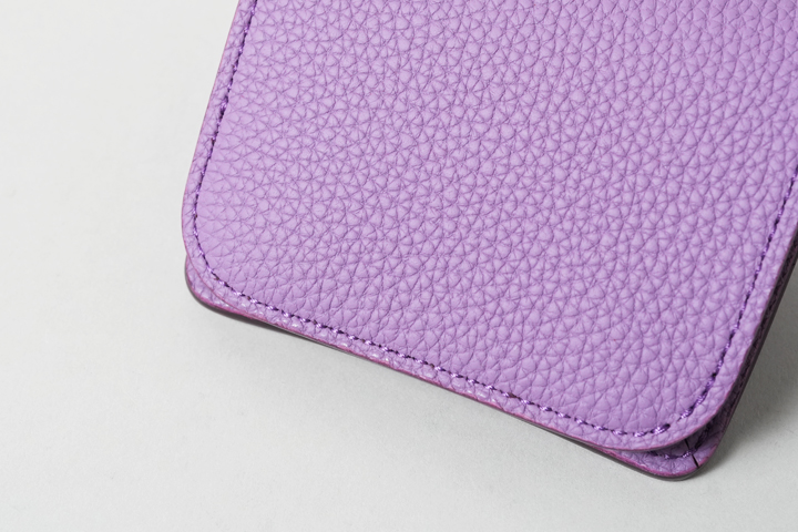 ラベンダーカラーのように灰みのある神秘的なカラー。パープルのステッチを合わせて類似色でまとめています。