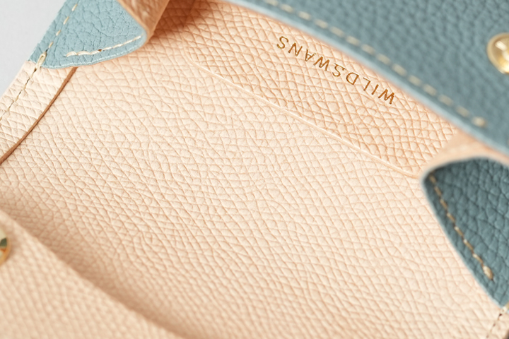 フラップはWILDSWANSの小物製品に多く取り入れられている、波を打つような形状のデザインです。壊れにくく、フラップを開ける際に指をかけやすい形状です。