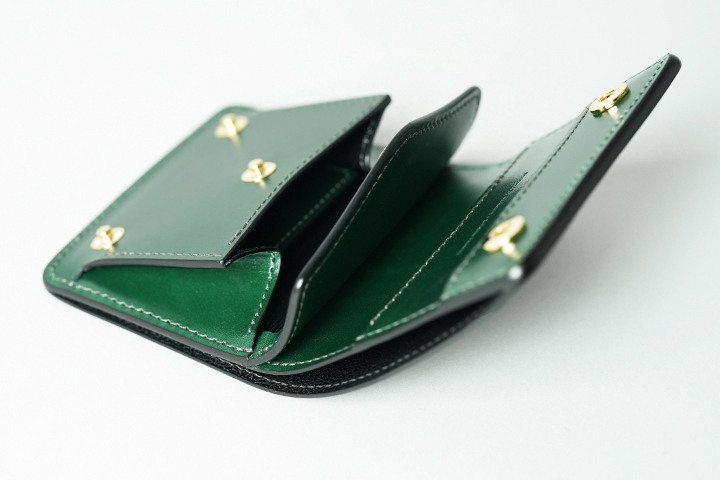 CASAは紙幣、コイン、カードをコンパクトに持ち運ぶことができます。フラップ部分にわずかな段差を設けているのでホックの開閉がスムーズです。