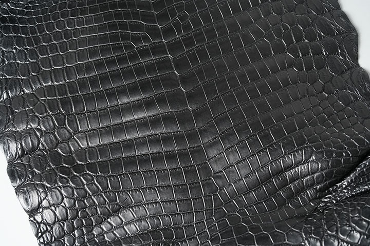 WILDSWANSが考える皮革の強度としては、「曲げ伸ばし」、「引き裂き」に対する強度を定義しています。もちろんクロコダイルもこの要件を十分に満たしている皮革の一つに数えられます。ただし、元々水辺にも生息するクロコダイルは水に強いとイメージされるかもしれませんが、クロコダイルが「皮」から「革」に変化した後においてはこのイメージが通用しなくなります。気を付けなければならないのは、水や汗、汚れの定着及び浸透です。これらが定着するとクロコダイルの艶が失われ、元通りに戻すことが非常に困難になるケースも珍しくありません。これはWILDSWANSが取り扱うサドルプルアップやシェルコードバンなどにも当てはまりますので、ご使用の際は注意が必要です。