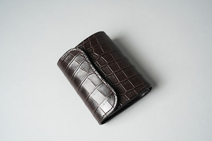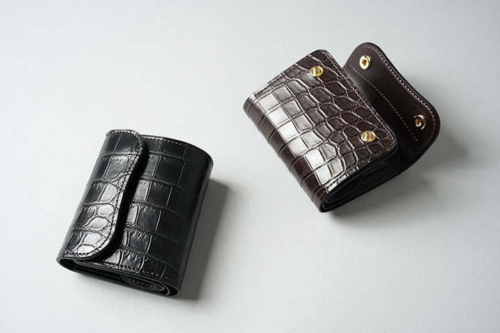 定番の小型三つ折り財布・ENOにクロコダイルバージョンが加わります。