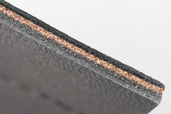 木材で言うところの合板のように、異なる素材を貼り合わせて様々な特性を得る技法を用いています。正に組み合わせの妙といったところで、正しく張り重ねることで同じ厚みの一枚革よりも張り感やコシは抜けにくく、頑強に仕上がります。