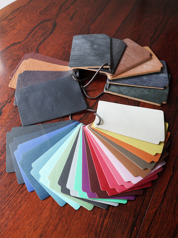 受注生産品はハンドルの長さや皮革のカラーをお選び頂いて製作する形となり、特に皮革のカラーは豊富なバリエーションからお選び頂けるため、ご自分だけの組み合わせのBarrel Toteをお作り頂くことが出来ます。