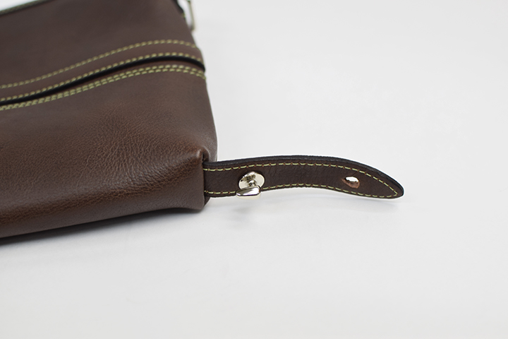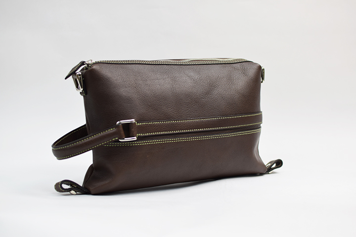 また片側のみに付属している革のストラップをハンドルにして手持ちのセカンドバッグとしてもお使い頂けます。