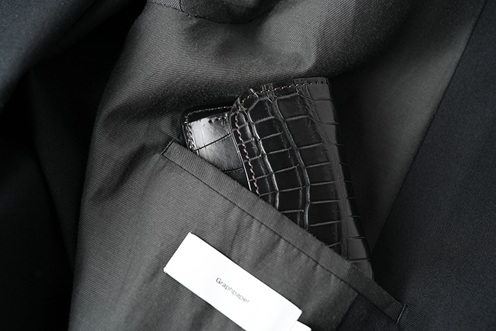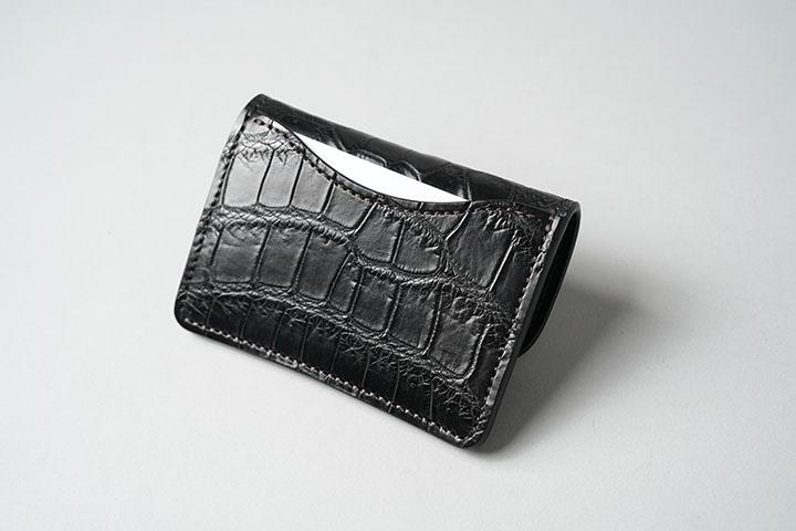背面やメイン収納部にもカードの収納が可能なTONGUEは、高い汎用性とコンパクトな形状により登場から10年以上が経過した現在においても高い人気を誇ります。また、クロコダイルアイテムは他の皮革以上に、ブラックを王道とする方が多いこともこちらのTONGUEが人気の理由です。