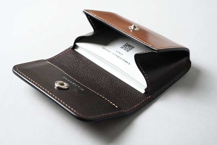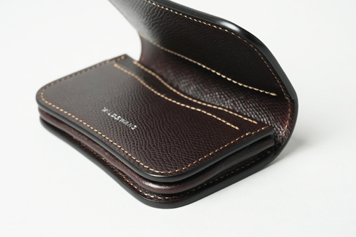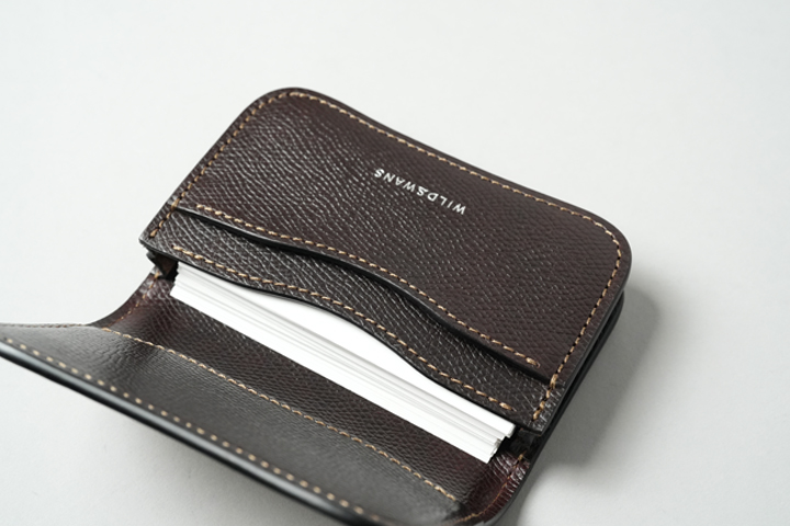 WILDSWANS製品のベストセラーの一つ、名刺入れのGENERALです。コバが曲線を描き、品格と職人の技巧が感じられます。