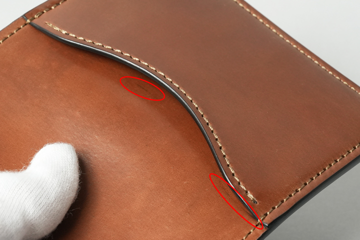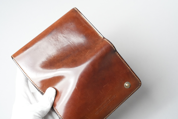 つるりとした美しい見た目から、ふとした瞬間に傷がつくことを恐れる方も多いかと思いますし、実際に繊細でデリケートな一面があることは否定できません。しかしながら、潤沢に含まれた油分と皮革そのものの強度はあらゆる皮革と一線を画し、永く使い続けられるタフさという意味では、革のダイヤモンドと称されるにふさわしい絶対的な実力をもった世界屈指のコードバン革なのです。