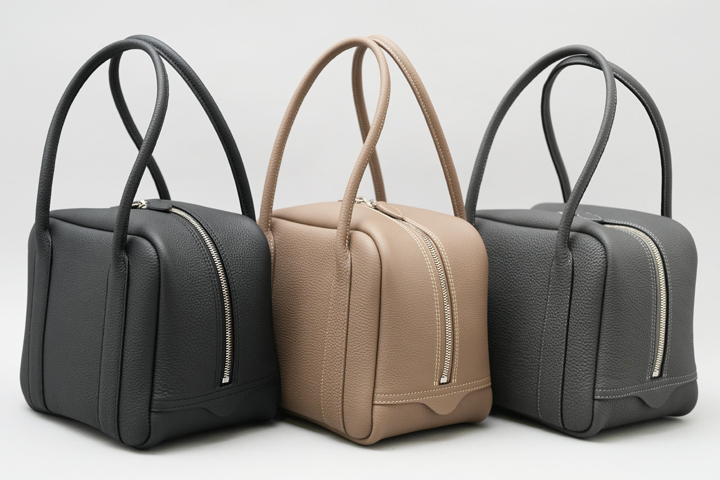 神戸のかばん屋さん、ル・ボナーのキューブ型ハンドバッグ・コンフェッティが入荷して参りました。