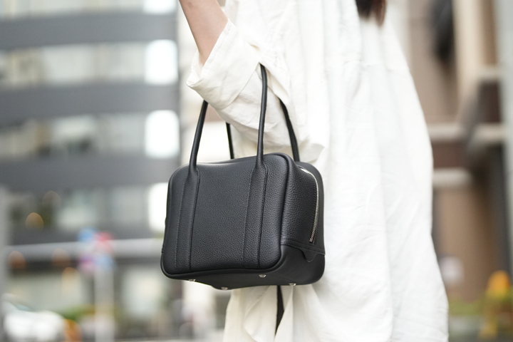 見た目には小ぶりなバッグですが立方体の形状のためか意外なほど収納量は高く、様々なシーンでご使用頂けます。