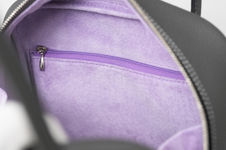メイン収納部はピッグスエードを貼り込んだ贅沢な内装で、仕切りの無い1室構造となっています。
