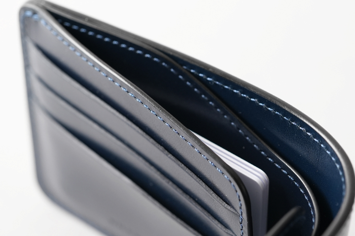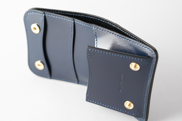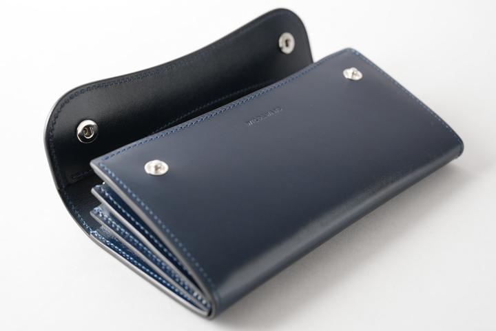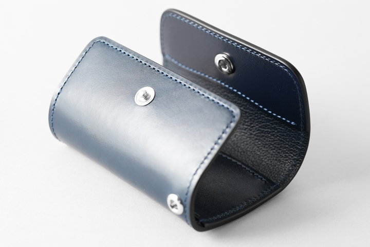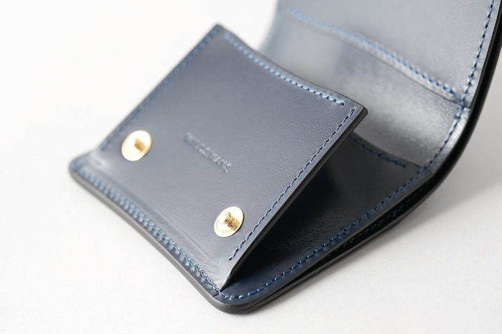 オーソドックスな名刺入れ、カードケースとしてご使用を頂けるほか、ホック付きのフラップと独特なマチ構造によってミニウォレットしてもご使用頂けるアイテムです。