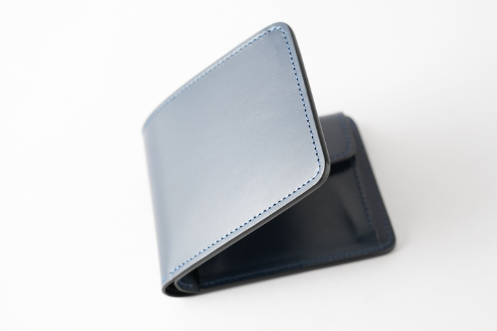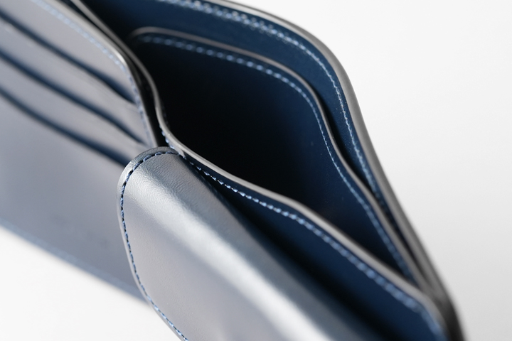 開閉にはホックなどを使用しないため、ご使用からしばらくはサドルプルアップのハリによってお財布は開いたままですが、ご使用を頂くことで段々と馴染み二つに閉じるようになって参ります。