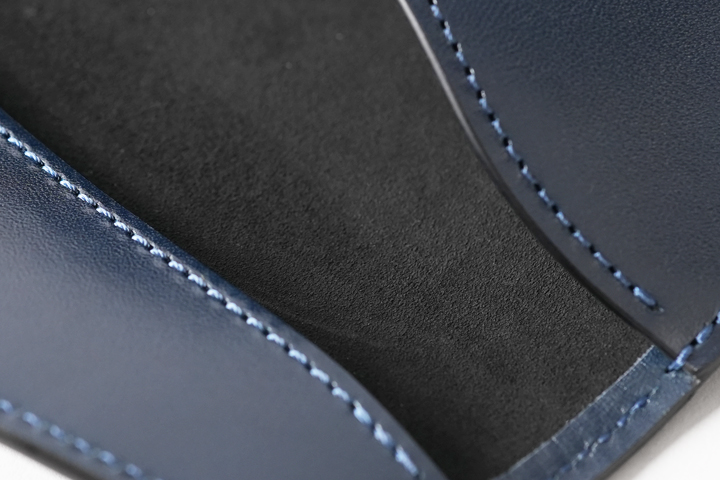 手に取ると本体はがっしりとしており、サドルプルアップを使用していることも勿論ですが、皮革のハリ感を活かした設計によって構造的に眼鏡ケースとして必要な強度を確保しています。