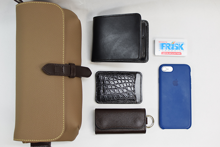 決して大きくはない容量ではありますが財布、携帯電話、キーケース、パスケースなどお出掛けに必須のアイテムをまとめて収納することができます。
