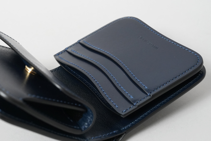 革で裏貼りのされた札室は紙幣の出し入れをスムーズに行うことができ、さらに中央部分が幅広になっていることで紙幣がはみ出しにくくなっています。 ここまでWILDSWANSのミニ財布3型をご紹介いたしました。