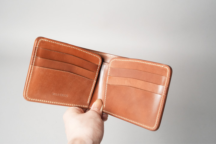 札室内にはホーウィン社のスタンプが刻印されています。これだけでいつもと印象がガラリと変わり、使うたびに見え隠れするスタンプにわくわくしてきます。WILDSWANS最古参のアイテムが新たな装いで登場する、注目のコンビネーションです。