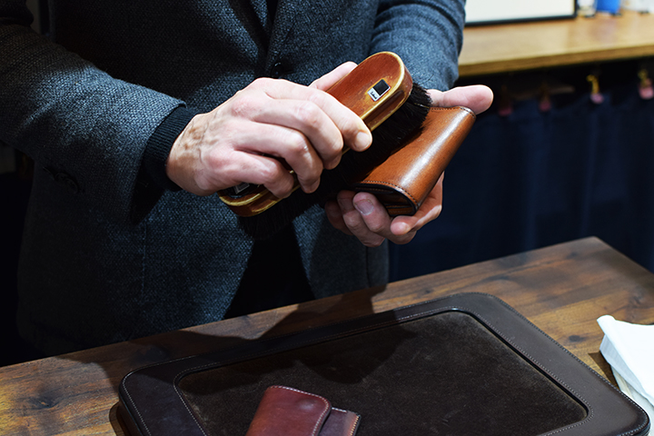 WILDSWANSではお使い頂いておりますお品物をより永くより良い状態で末永くお使い頂くためにエイジングサポートとして1点1点お手入れをさせて頂いております。