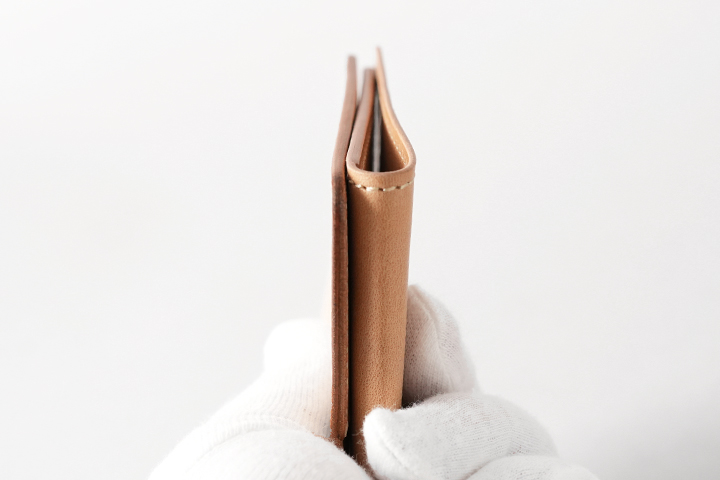 金具を使わず、革のみで仕上げたスリムなマネークリップです。