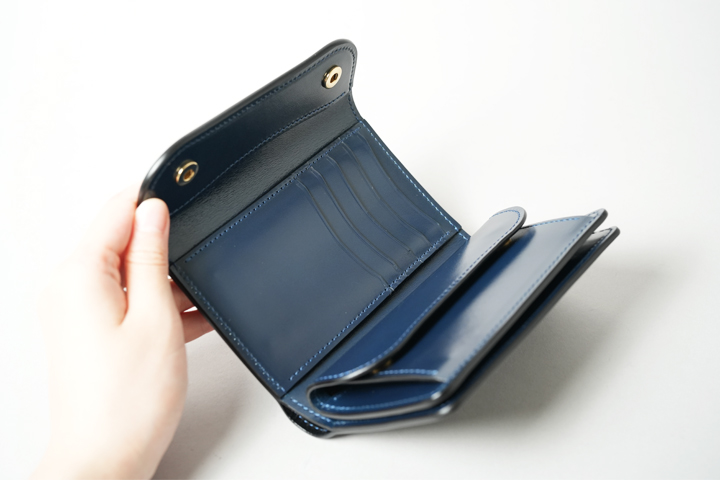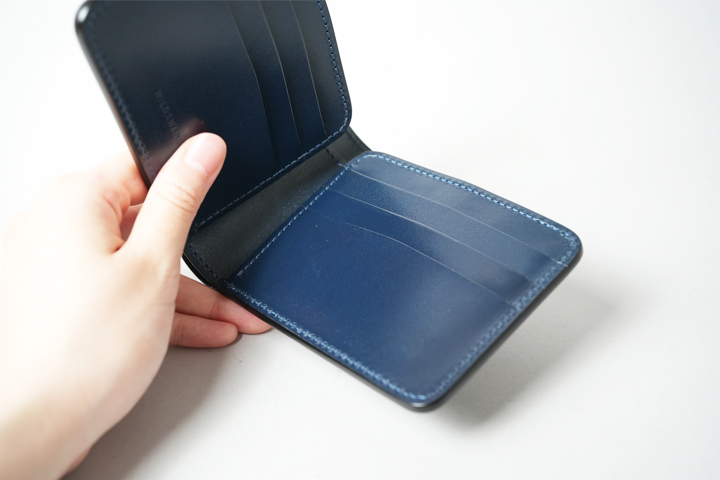 The WINGS is a simple wallet with a bill compartment, six card slots, and an L-shaped pocket on both sides. The bill compartment allows easy insertion and removal of banknotes and can also store tickets and other long items.