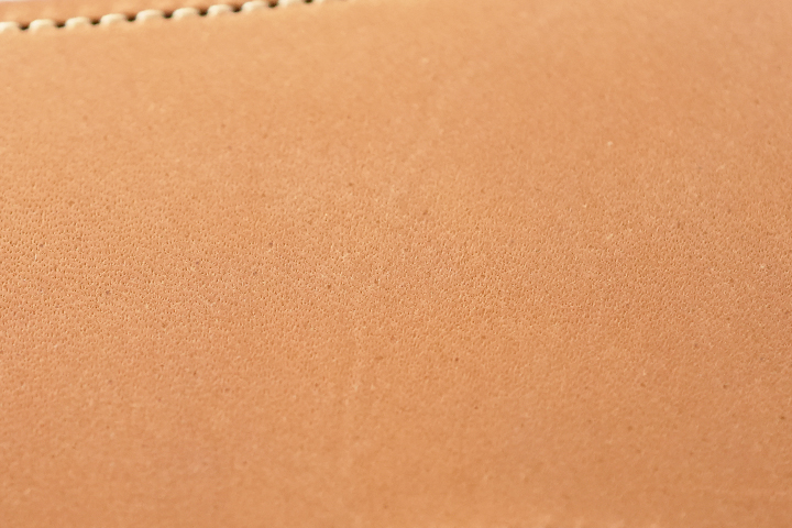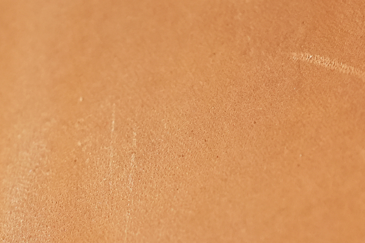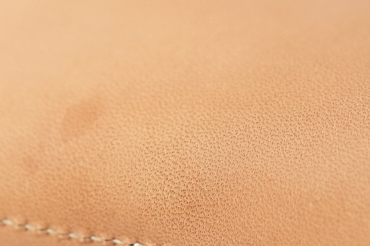 ・タンニン鞣しの自然な仕上げを施しているため、皮革の表面には小傷や染み、シワ、血筋などが所々に現れています。加えてナチュラルカラーは無染色のため非常に汚れやすく、水濡れなどによるシミが生じやすい皮革です。油分、水分に十分お気をつけください。