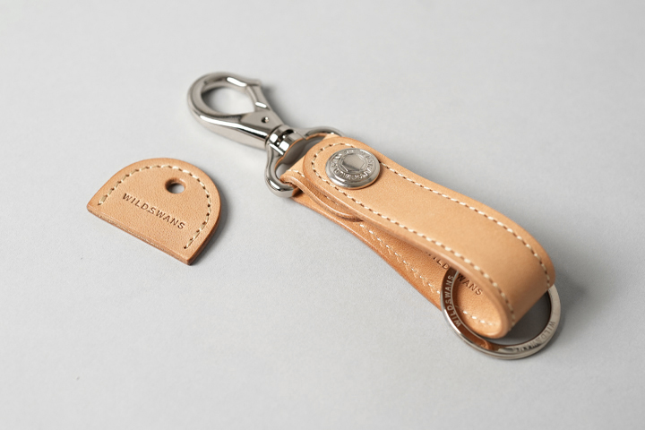2023年にナスカン金具と二重リングのサイズ変更というリニューアルを行っている本製品ですが、正面に輝くWILDSWANSオリジナルロゴ入りの7050番ホックは健在です。このホックは大事な鍵を持ち運ぶために、通常の開閉にも力が必要なほど頑丈な金具です。鍵が増えた場合には二重リングを追加したり、各種カラビナとKEY HOOKを組み合わせての使用も可能です。 キーキャップは鍵番号を隠すためのカバーや、鍵同士の干渉防止、静電気防止にご利用ください。