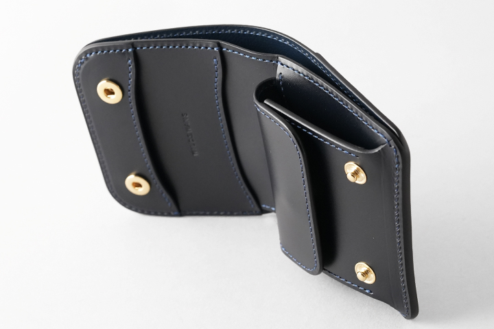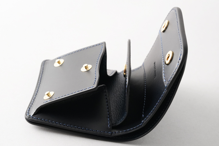 多機能コインケース・TONGUEをベースにフラップ部分にハトメ金具を取り付けたモデルです。