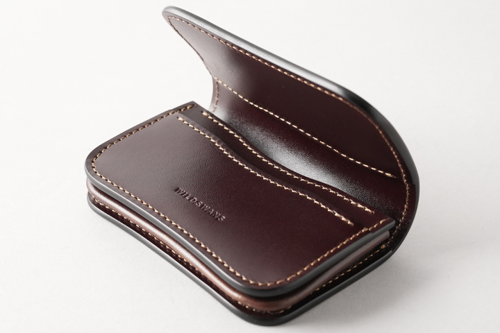 1つ前にご紹介したCASAと同じミニ財布のカテゴリに位置するアイテムですが、また少しコンセプトの異なる人気のモデルです。 WILDSWANSの小型のアイテムには珍しく背面にはポケットを持たないすっきりとしたデザインで、その分切れ目の無い一枚の革の変化をじっくりとお愉しみ頂けます。