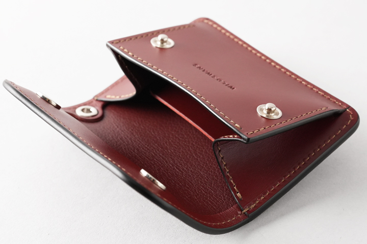 カード、コインの収納量を調節できるという、独自の機能を備えたミニ財布です。 近年急激に需要の高まりを見せる小型のアイテム、WILDSWANSの展開するミニ財布のラインナップの中で携帯性と収納力のバランスに優れたモデルがこのCASAです。 本体の背面にはカードポケット、内装にはホック式フラップの付いたコインケースと、その背面にはカードケースを備えています。 カードケース、コインケースは1つのスペースをフラップが仕切る形で共有しており、フラップを可動することでそれぞれの収納量が変化する機能を持っています。