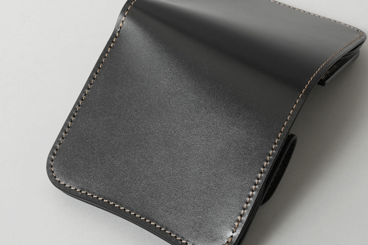 古き良きアメカジらしさを体感できるミドルウォレットです。留め具が付属しておりませんので、開いてすぐ直感的にお使い頂けます。内装の右側に位置するカードポケットは、2段のカードポケットと深めのカードポケットが1室用意されていますので、カードの種類や使用頻度により仕分けることが出来ます。内装の左側に位置するコインケース内には仕切りが備えられていますので、硬貨を仕分ける他、カードポケットに入りきらないカードを収納することも可能です。札室内の両脇に備えられた仕切りを利用することで紙幣を仕分けることも出来ます。