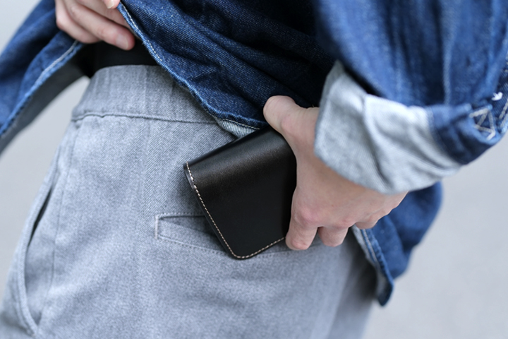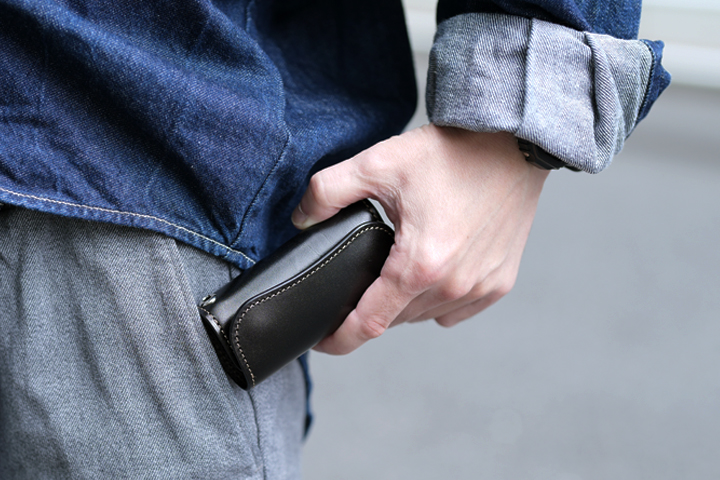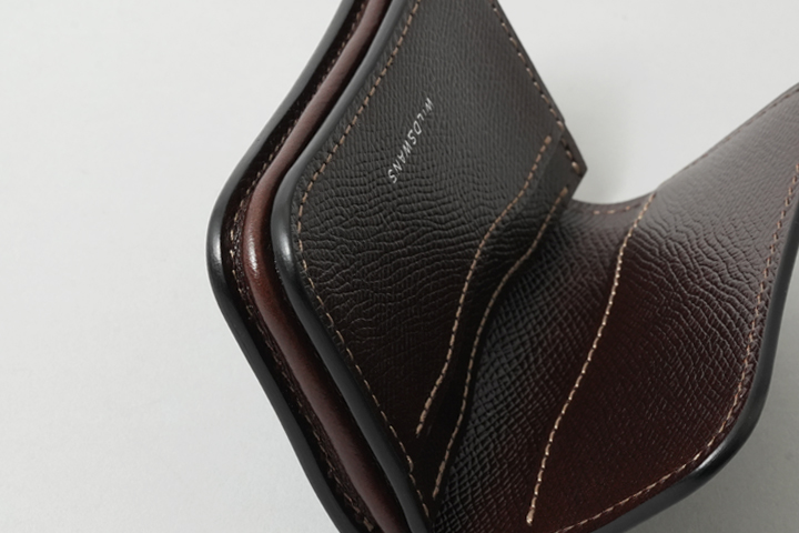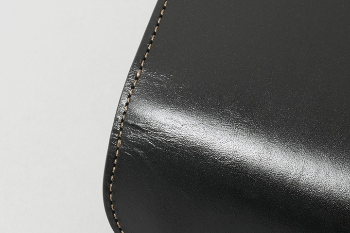 ・油分が多い皮革のため、コバ(革の裁断面、製品の縁)の部分に革の重なりが線のように現れるケースがあります。また、ご使用頂くことで線がより顕著に現れる可能性があるため、コバ部分を過度に変形させないようご注意ください。