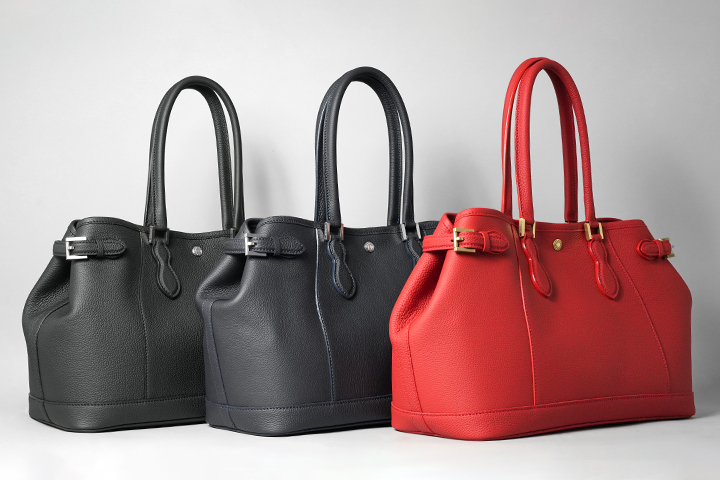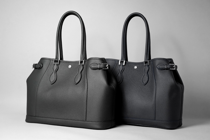 モンパルナスはバッグ用の皮革という明確な使用目的を持って開発されたもので、厳選された原皮を用いた、ソフトな質感を持つ上質な牛革です。肌理の細かいシボのある表面は水分や傷にも比較的耐性があり、クロム鞣しでありながら上品な艶が現れるのが特徴です。