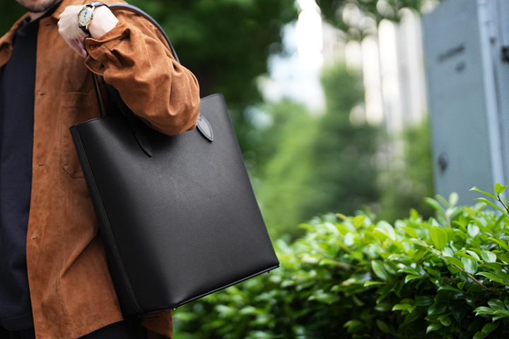 靴職人の福田洋平氏とのコラボレーション企画として新たに誕生した、受注生産にて販売中のトートバッグです(こちらの製品はご注文完了後3~6か月後のお届けとなります)。このアイテムはWILDSWANSの第二の製作拠点、WILDSWANS東京アトリエで製作しております。 目的の用途を果たし、かつ使いやすさや耐久性に富んだ「上質な道具」をコンセプトに何度も試作を重ね、ビジネスシーンにも休日にも合うようにシンプルなデザインを採用しています。胴体部分はテア、内装にダービー、ハンドルと側面・底面のパーツにフルグレインブライドルレザーと3つの皮革を贅沢に組み合わせており、独自の3層構造によってしっかりしたハリ感と耐久性を持ちます。どこに注目しても絵になる格上のバッグです。