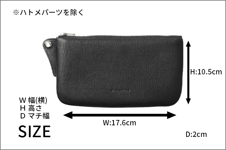 Mサイズには人気モデルのTONGUEやキーケースが入りますので、鞄の中での保護にも役立ちます。ワイヤレスイヤホンやボールペンの持ち運びにもおすすめです。