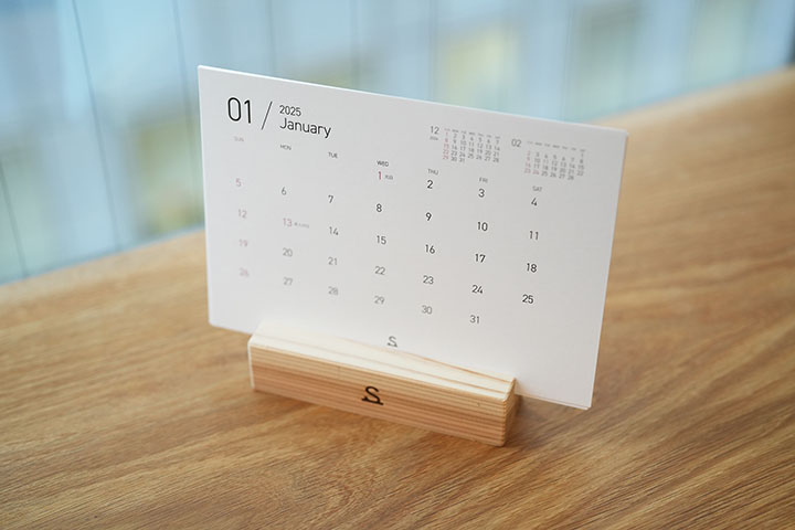 ※昨年までカレンダーに同封していたトコ革のカレンダーホルダーは付属しません。カレンダーホルダーを希望の方は次にご紹介するアイテムをご検討ください。
