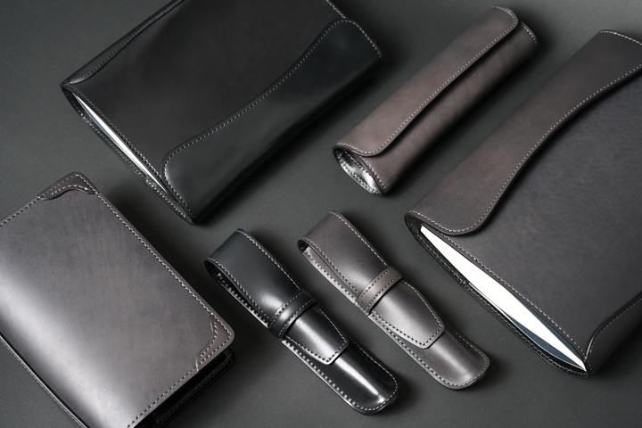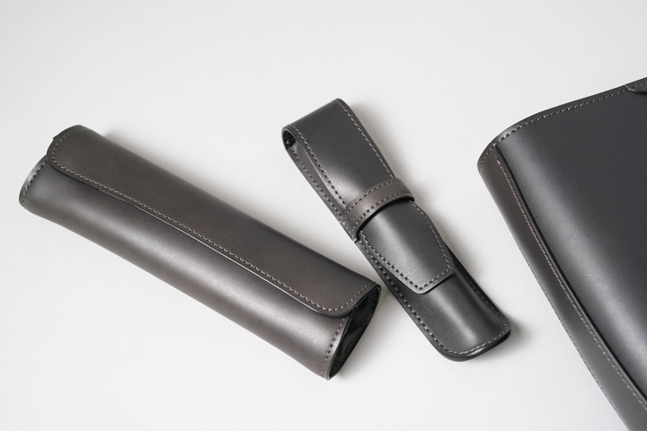 財布類だけでなく、ステーショナリーのご用意もございます。引き締まったシェルコードバン/ブラックと、アンティークのようなオリジナルコードバン/グレー。どちらのシリーズも、品格がありつつ日常に溶け込むカラーです。