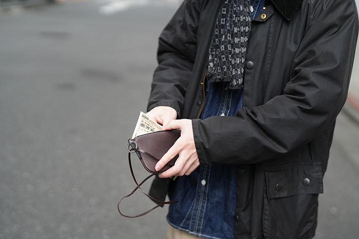 Mサイズも財布として使用して頂くことも可能です。Sサイズに比べて紙幣を折らずに収納できるため、長財布と同じような感覚で使用できます。また、Sサイズよりも一回り大きいため、アメニティポーチとしてもご利用が可能です。WILDSWANSが主に取り扱うタンニン鞣しの皮革に比べ、THEAは水分に対しても一定の耐性がありますので様々な使用環境で気兼ねなくご使用頂けます。