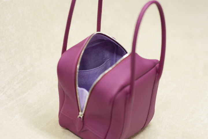 外装素材にはドイツ・ペリンガー社のシュランケンカーフを使用しており、この皮革のハリや弾力性によって生み出されたふくよかなシルエットが生み出す上品さや愛らしさが印象的です。