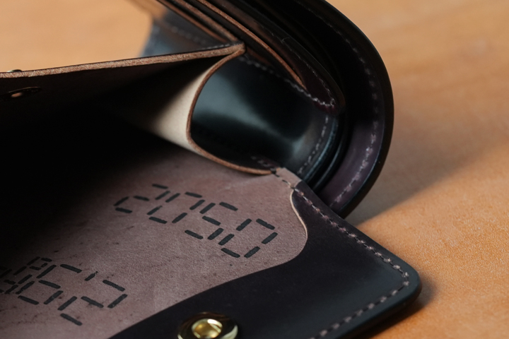 The Horween Company’s stamp is engraved on the bill compartment, making it both visible and discreet when used. This feature was introduced in the previous full Cordovan series. Due to its popularity, it has been added to the lineup once again this time.